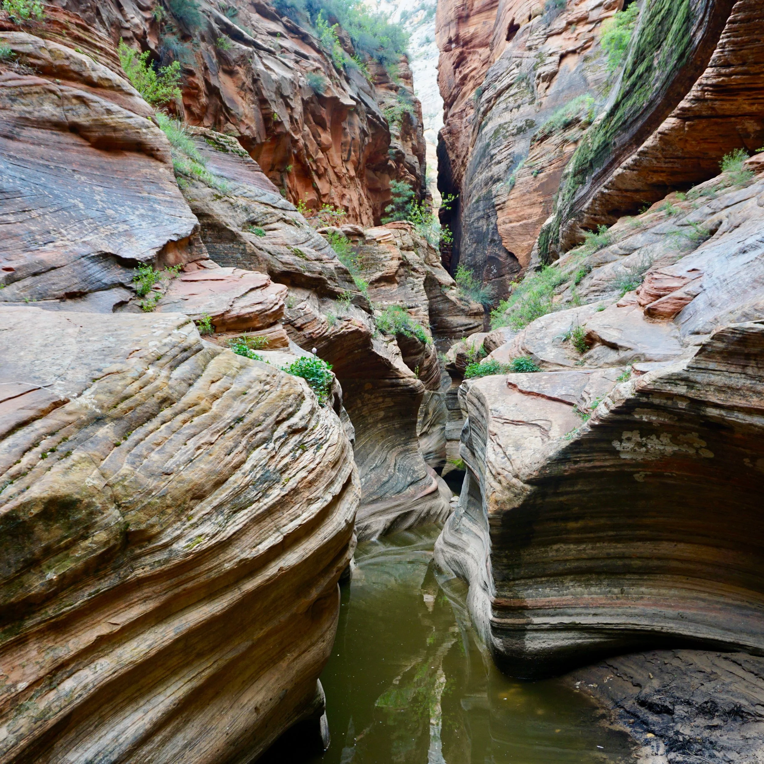 This hike was the most adventuresome of our climbs in Zion. We heard it was scary, but our trekking egos were a bit swollen from our Kilimanjaro hike. Signs along the trail warn prospective hikers that multiple people have died on this climb. Adam’s sister and her boyfriend decided that they’d seen enough and bailed out before the summit attempt.